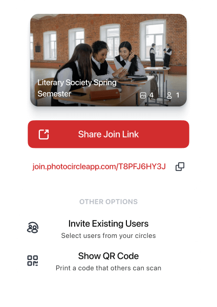 Invite people using a link, QR code, or email so contributors can join quickly and start sharing.